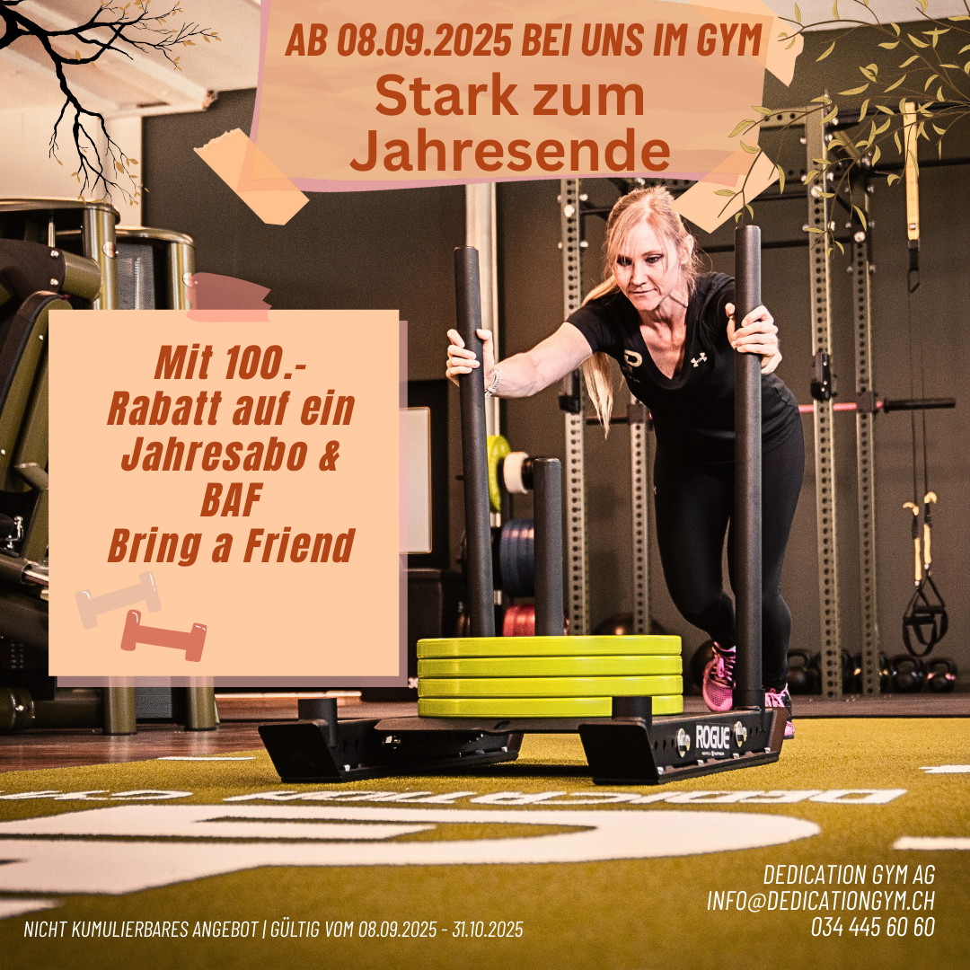 Bei uns im Dedication Gym erlebst du eine einzigartige Trainingsatmosphäre. Hochwertige Geräte und ein super ausgebildetes Team unterstützen dich bei deinen Zielen und Wünschen mit voller Hingabe.
